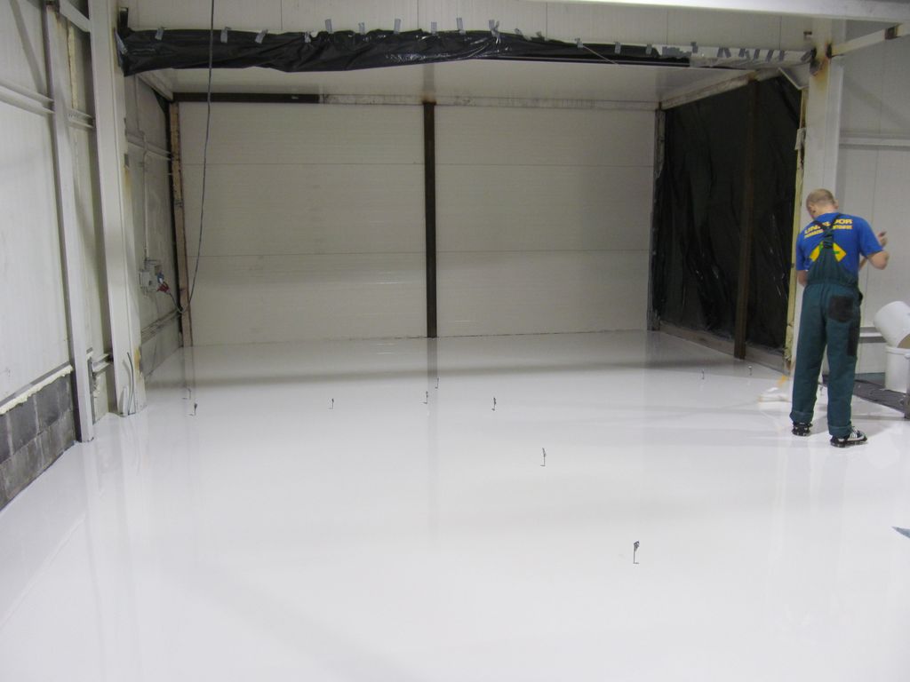 Posadzka: epoksydowa Eurofloor TFD i Eurofloor SL-R (biała).